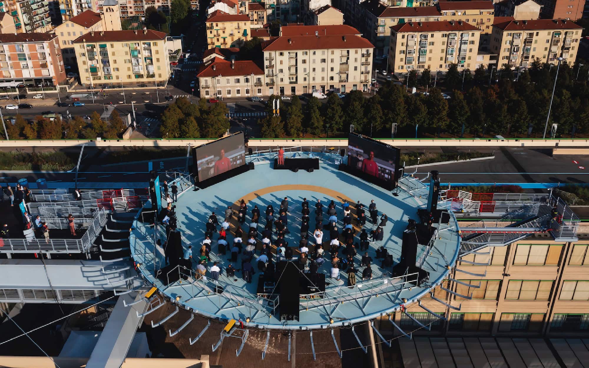We designed and organised the event, taking care of every detail, from the setup to the direction, up to the video editing and live streaming of the press conference. Additionally, we conceived and produced a video shot on the same day of the event, in which Olivier François, CEO of Fiat – directly from the new highest rooftop garden in Europe, the roof of Lingotto – gave Italian audiences a preview of the Casa 500 museum, the Pista 500, and the new car.